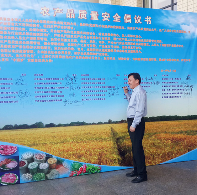 6月10日“全國食品安全宣傳周活動”在北京啟動。6月11日農(nóng)業(yè)部在京舉辦全國食品安全宣傳周主題日活動。南通江山農(nóng)藥化工股份有限公司總經(jīng)理薛健同志作為農(nóng)藥生產(chǎn)企業(yè)的代表,與全國其他30名農(nóng)產(chǎn)品、農(nóng)藥、獸藥、飼料生產(chǎn)企業(yè)代表在活動現(xiàn)場向社會聯(lián)合發(fā)出“遵紀(jì)守法、誠信經(jīng)營”倡議,并現(xiàn)場簽訂了農(nóng)產(chǎn)品質(zhì)量安全倡議書。