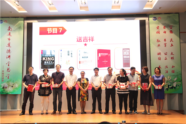本次活動圍繞“誦經(jīng)典”“學(xué)模范”“展風(fēng)采”“話廉潔”“觀情景劇”“談感悟”“送吉祥”“唱歌曲”八個環(huán)節(jié)開展。詩朗誦《實干才能夢想成真》重溫了習(xí)總書記提出的“中國夢”,堅定了大家在平凡崗位上創(chuàng)造不平凡的信心;江天化學(xué)吳松華、精華集團朱玉娟兩位同志的先進事跡讓大家在身邊人、身邊事中找到感動;情景劇《春風(fēng)里的故事》讓大家在忍俊不禁中體味到資產(chǎn)管理一線員工的不易和他們迎難而上的信心;一曲《真心英雄》展現(xiàn)出了集團職工團結(jié)向上的蓬勃朝氣,也將活動推向高潮。在“送吉祥”環(huán)節(jié),集團領(lǐng)導(dǎo)將精心挑選的《投資最重要的事》等金融書籍贈予各投資企業(yè)代表,勉勵他們加強學(xué)習(xí),不斷創(chuàng)新,用拼搏和奉獻實現(xiàn)集團的跨越發(fā)展。