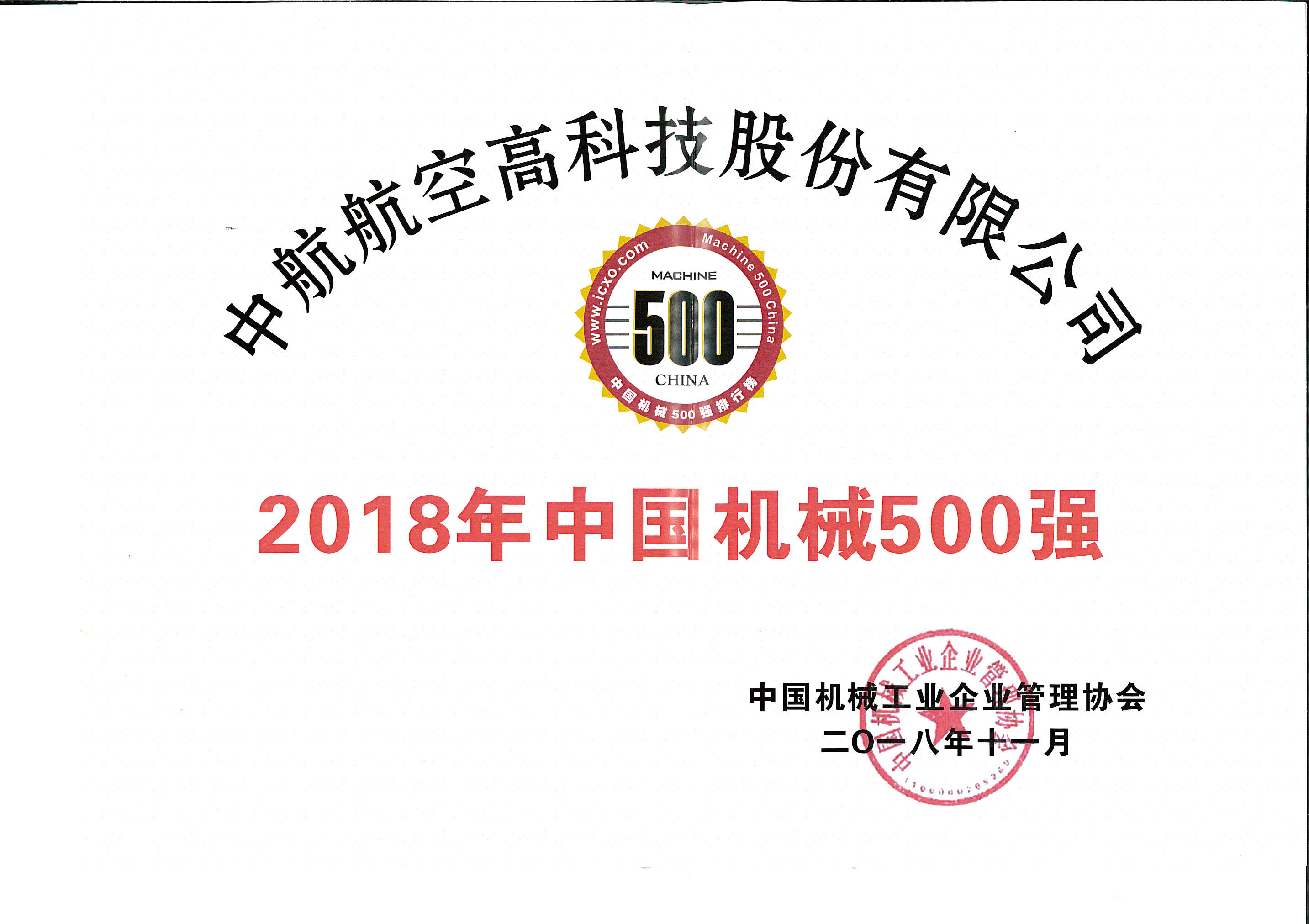 近日,在2018年(第十六屆)《中國機(jī)械500強(qiáng)研究報告》調(diào)查發(fā)布活動中,中航高科榮獲中國機(jī)械工業(yè)企業(yè)管理協(xié)會頒發(fā)的“中國機(jī)械500強(qiáng)”榮譽(yù)稱號。