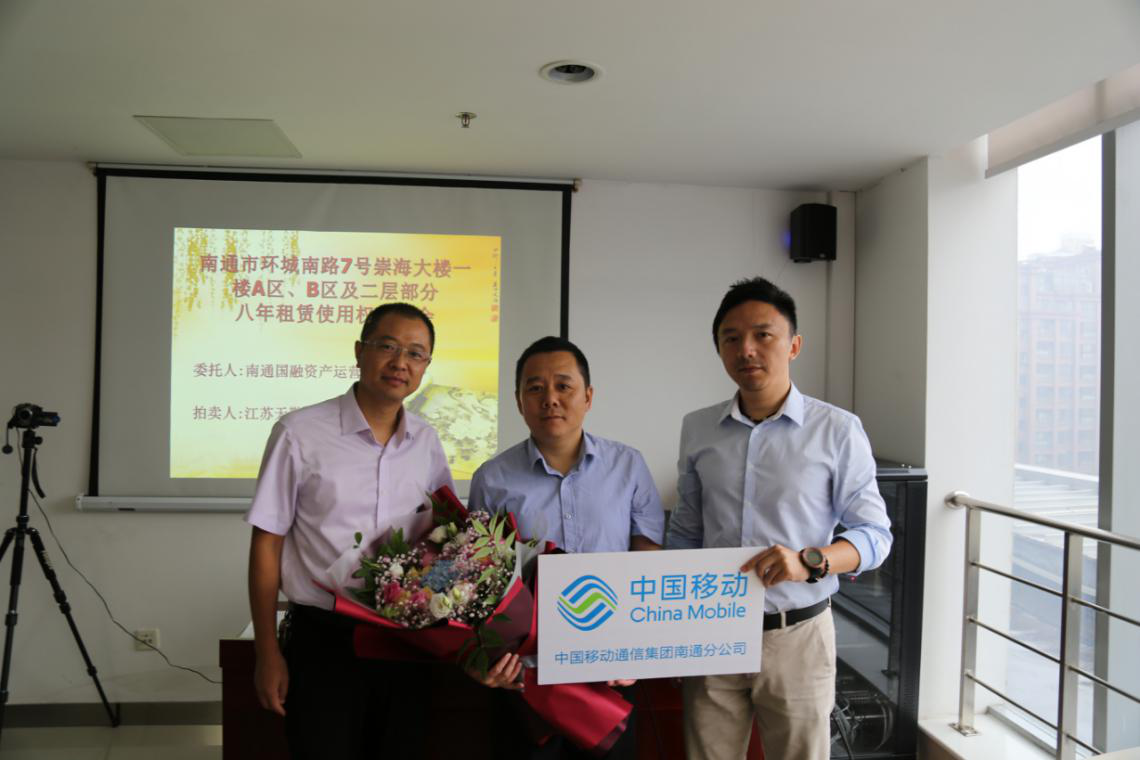 在宣讀了房屋租賃使用權(quán)拍賣的特別規(guī)定等文件并確認(rèn)各競(jìng)租人無異議后,現(xiàn)場(chǎng)監(jiān)拍人遞交了本場(chǎng)拍賣會(huì)的底價(jià)函。經(jīng)拍租,中國移動(dòng)通信集團(tuán)江蘇有限公司南通分公司代理人、張家港保稅區(qū)佑福珠寶貿(mào)易有限公司代理人分別拍中崇海大樓A區(qū)八年租賃使用權(quán)、B區(qū)八年租賃使用權(quán),并簽署了成交確認(rèn)書,成交年租金合計(jì)達(dá)620萬元,八年租金總額達(dá)4960萬元。公司領(lǐng)導(dǎo)代表公司向房屋競(jìng)租人遞送了鮮花表達(dá)祝賀并合影留念。統(tǒng)一規(guī)劃,統(tǒng)一布局,統(tǒng)一招租,統(tǒng)一競(jìng)租,國融公司充分挖掘崇海大樓優(yōu)越的商業(yè)地段和濃厚的商業(yè)氛圍優(yōu)勢(shì),轉(zhuǎn)化為優(yōu)良、持久、高效的經(jīng)營收益,實(shí)現(xiàn)了該處資產(chǎn)科學(xué)升值。公司將以崇海大樓成功招租的經(jīng)驗(yàn)為借鑒,繼續(xù)做好所管理國有資產(chǎn)的升級(jí)改造,切實(shí)履行好國有資產(chǎn)保值增值的職責(zé),推動(dòng)企業(yè)的高質(zhì)量發(fā)展。