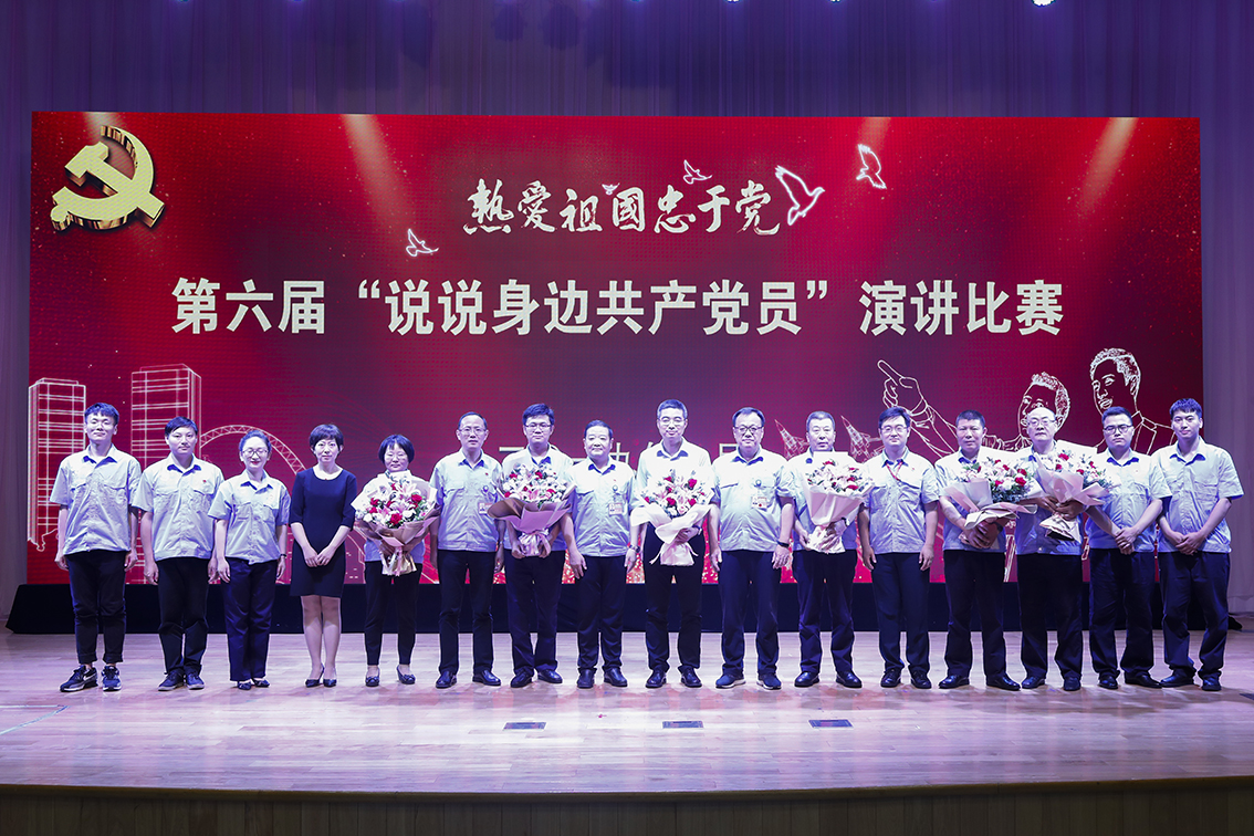 來自各基層黨支部的施天鳳、王強等7名演講者聲請并茂地為大家講述了身邊優(yōu)秀黨員的先進事跡,贏得了現場無數喝彩。 演講比賽結束時,7位演講事跡主人公上臺與大家見面,公司領導為他們獻上了最美麗的鮮花,并現場與遠在非洲工作的演講事跡主人公李紅飛進行了視頻連線,送去了關心和問候,全體參會人員為他們送去了最熱烈的掌聲。