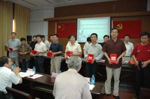 入黨60年離休干部接受紀(jì)念贈(zèng)品