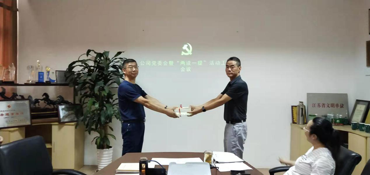 為進(jìn)一步推進(jìn)公司“不忘初心,牢記使命”主題教育開展,落實(shí)公司黨委“兩讀一提”活動(dòng)部署,促使黨員、干部養(yǎng)成良好讀書習(xí)慣,進(jìn)一步加強(qiáng)基層支部黨建工作建設(shè)、提升黨員、干部思想政治水平,8月22日下午,南通紡織控股集團(tuán)紡織染有限公司黨委組織開展了“紅色贈(zèng)書”活動(dòng)。公司黨委書記、董事長李志宏、黨委副書記盧李星等出席活動(dòng)。 活動(dòng)中,李志宏同志分別向本部黨支部、崇天黨支部依次贈(zèng)送《習(xí)近平新時(shí)代中國特色社會(huì)主義思想學(xué)習(xí)綱要》《不忘初心·牢記使命專題十講》、《黨員發(fā)展對(duì)象培訓(xùn)教材(2019年版)》《國有企業(yè)紀(jì)檢監(jiān)察工作手冊(cè)》等書籍。其中《習(xí)近平新時(shí)代中國特色社會(huì)主義思想學(xué)習(xí)綱要》為全體黨員人手一本。