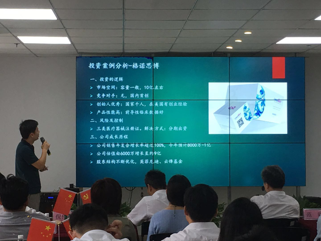 活動上,天演資本投資總監(jiān)張建介紹了投資基本知識及典型投資案例,南通牛觸信息科技有限公司、南通林格自動化系統(tǒng)工程有限公司負責人分別作了“數字化工廠”以及“激光觸控技術的衍生設備研發(fā)”項目推介。在座員工活學活用,充分發(fā)表意見,與企業(yè)做了深入溝通與交流,投資專家也對項目作出點評,給予了指導和建議。最后,產研院總經理范昹對本次活動給予總結,并對所有員工提出了殷切希望,要求產研院全體員工以“不忘初心、牢記使命”主題教育活動為契機,牢牢把握此次學習機會,充分利用投資沙龍活動提高自身的業(yè)務水平,以項目經理人為目標,切實增強會看項目、懂項目、分析項目的能力,不斷拓展產研院投資渠道,推動產研院實現更高質量發(fā)展。