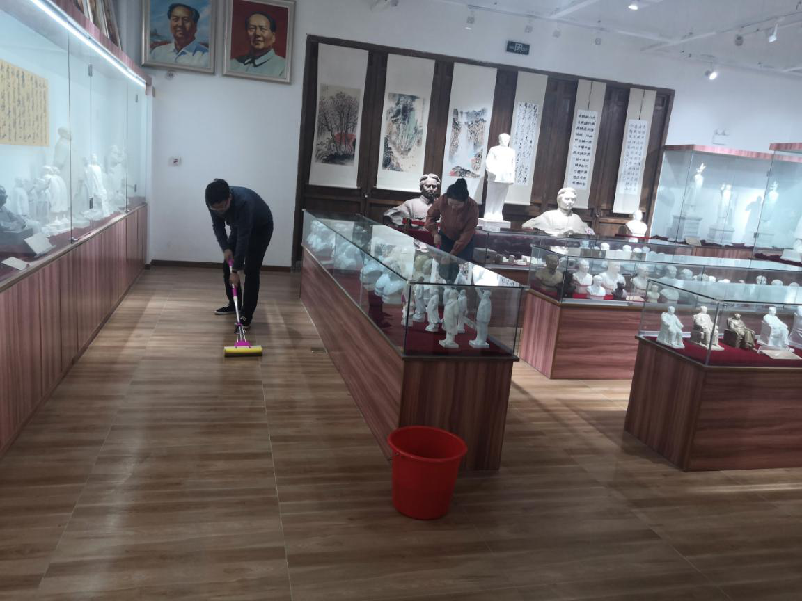 黨員們首先來到毛主席塑像收藏紀(jì)念館參觀學(xué)習(xí)。紀(jì)念館展示了上世紀(jì)五十年代初至七十年代末全國各地制作的毛主席塑像及瓷板畫、瓷擺件等各類藝術(shù)品,這些塑像品種繁多、質(zhì)地精美,惟妙惟肖地刻畫出偉人的精氣神。通過工作人員的介紹,黨員們了解了不同時期、不同造型毛主席塑像的故事和意義,也通過這些塑像更加深入地學(xué)習(xí)了黨史和新中國史。 塑像紀(jì)念館面積600平方米,藏品達6500件,由館主沈愛國老夫妻倆管理。他們每天都要接待前來參觀學(xué)習(xí)的黨員群眾,近期不少單位在此開展主題活動,他們倆就更忙了,每天僅打掃衛(wèi)生就很不容易。國盛環(huán)境黨支部了解這一情況后,主動組織黨員帶著拖把、水桶、抹布等到塑像館開展志愿服務(wù)。黨員們有的打水,有的拖地,有的擦拭玻璃展柜,大家行動迅速、認真細致、井然有序。國盛環(huán)境黨支部也與沈愛國老人約定,今后館里有什么困難,可以隨時聯(lián)系國盛環(huán)境黨支部幫助解決。