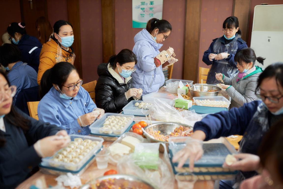 一大早,食堂工作人員就精心準(zhǔn)備了滿滿當(dāng)當(dāng)?shù)酿Q飩餡兒和餛飩皮,靜候各位女神一展身手。活動(dòng)中大家互相切磋廚藝,互相學(xué)習(xí)包餛飩的多種方法,在一片歡聲笑語(yǔ)的和諧氛圍中結(jié)束了此次活動(dòng)。