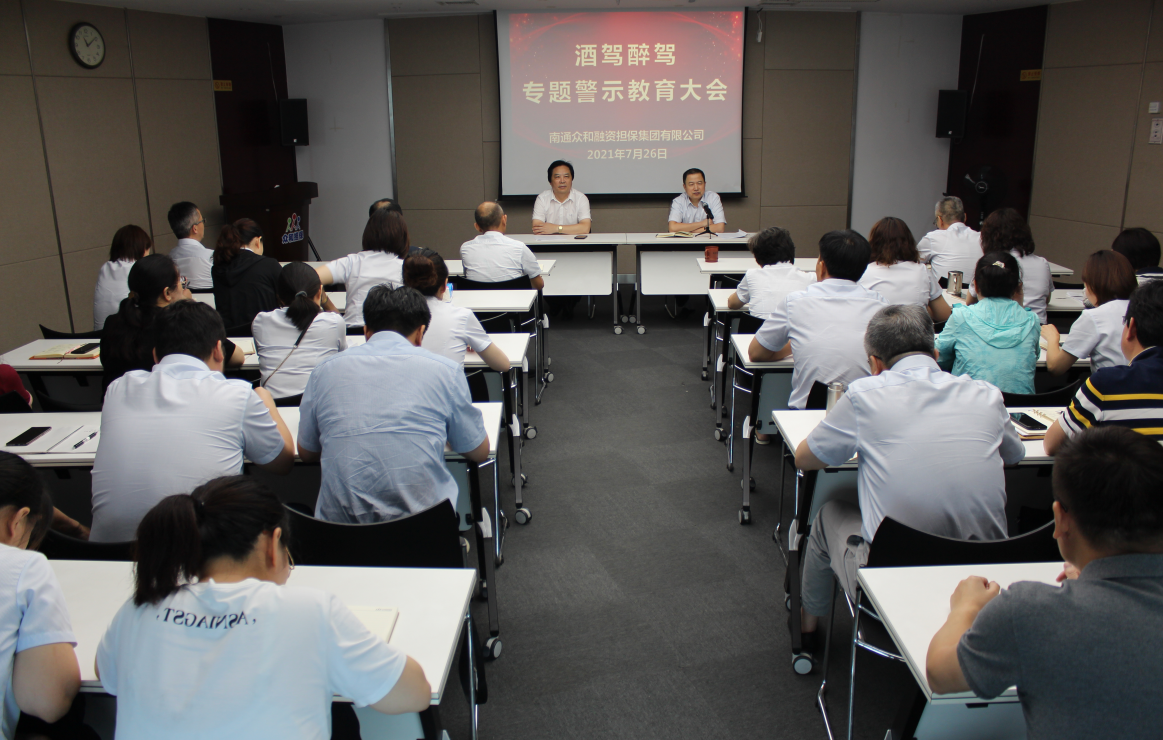 為深入貫徹落實(shí)產(chǎn)控集團(tuán)關(guān)于開(kāi)展“酒駕醉駕專題警示教育”通知要求,進(jìn)一步強(qiáng)化酒后駕車警示教育,有效預(yù)防和堅(jiān)決遏制公司干部職工酒駕醉駕等違法違紀(jì)行為的發(fā)生,7月26日上午,南通眾和融資擔(dān)保集團(tuán)有限公司召開(kāi)酒駕醉駕專題警示教育大會(huì),本部全體干部職工、子公司中層以上干部近60人參加會(huì)議,黨支部書(shū)記何葉主持會(huì)議。
