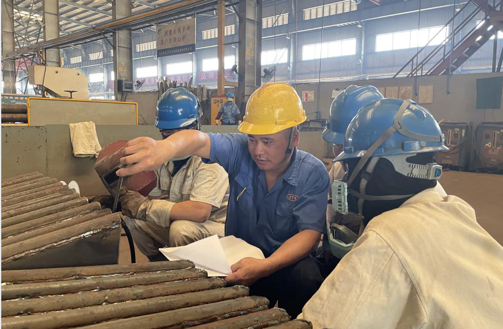 金通靈,一個有著深厚歷史底蘊的企業(yè),是孕育勞模的沃土,多年來,培養(yǎng)出3名省勞動模范,6名市勞動模范,1名區(qū)勞動模范,2018年6月,金通靈成立了勞模集群黨支部,充分發(fā)揮勞模示范效應,引領產(chǎn)業(yè)工人加入到創(chuàng)新驅(qū)動發(fā)展的行列,助力企業(yè)發(fā)展。尹芬興便是勞動模范中的代表人物,今年他被評為“江蘇省勞動模范”,年近五十的他已在金通靈走過26年的青春歲月。當年尹芬興從安徽老家出來時,他還不到20歲,憑著一腔熱血和對未來美好的憧憬來到南通工作。他把勞動當做樂趣,跟同事們交流經(jīng)驗、切磋手藝,共同解決工作中遇到的難題是他工作的常態(tài)。26年來,他不斷摸索,不斷學習,不斷提升,積極發(fā)揮勞模示范帶頭作用,帶領團隊成員積極投身到創(chuàng)新工作中,多年來攻克多個技術(shù)難題。其中“兩節(jié)身”前盤的成型技術(shù),低溫升蒸汽壓縮機組合成型免加工藝加強圈技術(shù),干熄焦煤氣風機制作工藝改進等創(chuàng)新成果不僅節(jié)約了大量生產(chǎn)成本、縮短生產(chǎn)時間,更保證了產(chǎn)品質(zhì)量,為公司創(chuàng)造了巨大經(jīng)濟效益。如今的尹芬興是葉輪成型組一組組長,每日負責的事情繁雜,他卻總能一絲不茍地完成,臟活、累活搶著干,白色工作服印著他斑斑勞動的印記,也承載了他一路奮斗的榮光。26年來,他始終把“愛一行、干一行、專一行”作為工作的信條,以此激勵自己在工作崗位上奮發(fā)成才。就是憑著這樣的信念,他在一線崗位上堅守了二十余年,用堅持堅毅的姿態(tài)詮釋著勞模精神,讓勞模精神發(fā)光發(fā)熱。今年,尹芬興光榮地加入中國共產(chǎn)黨,高舉右拳,在黨旗下莊嚴宣誓,他黝黑發(fā)亮的面龐上印刻著堅定的信仰,從此,懷揣著共產(chǎn)黨人的初心使命,他又踏上了新的征途。