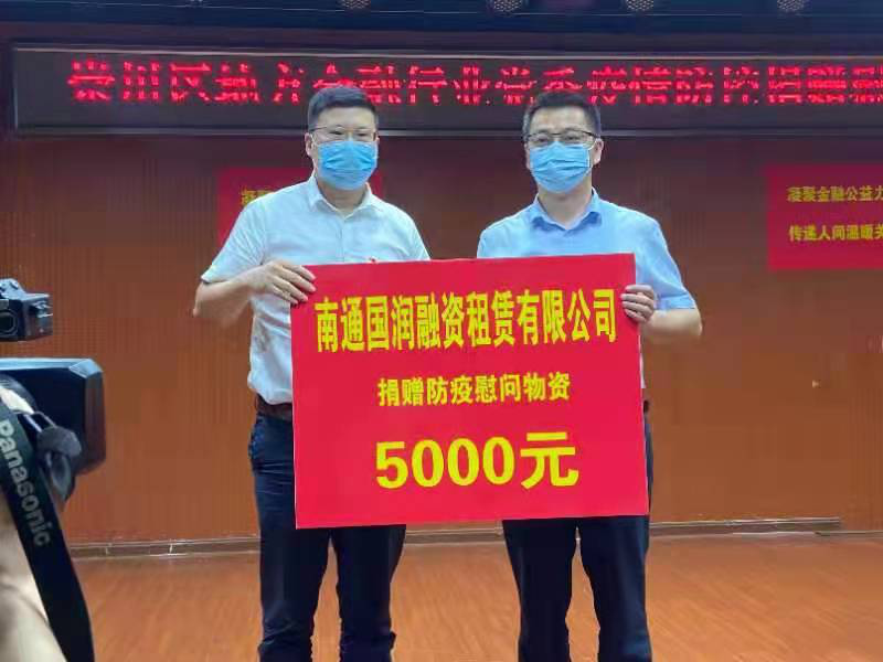 國潤租賃作為南通市融資租賃行業(yè)的領(lǐng)軍人物,第一時(shí)間響應(yīng),黨支部副書記吳小兵同志代表公司向抗疫一線社區(qū)捐贈5000元防疫物資,助力于街道及社區(qū)的疫情防控工作。