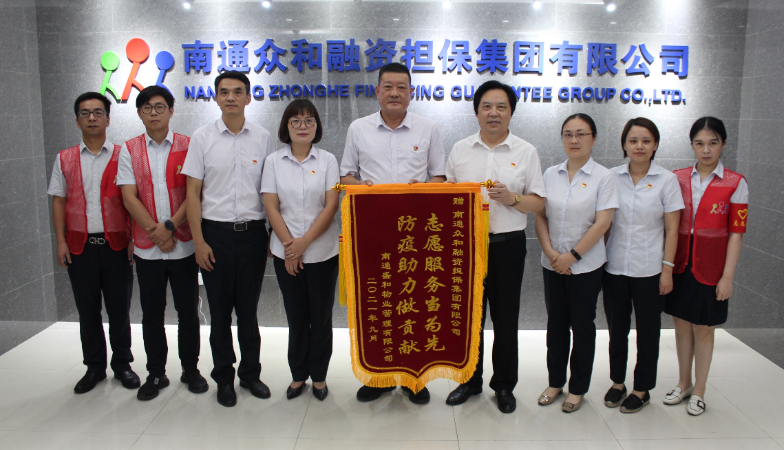 9月6日下午,南通盛和物業(yè)有限公司黨支部書記兼總經(jīng)理劉曉軍、副總經(jīng)理高曉蓉一行向眾和擔(dān)保送來了印有“志愿服務(wù)當(dāng)為先 防疫助力做貢獻(xiàn)”字樣的錦旗,誠摯感謝眾和擔(dān)保在盛和物業(yè)駐啟瑞廣場防疫工作人手緊張的關(guān)鍵時(shí)期,迅速組建了一支40名青年黨員、業(yè)務(wù)骨干構(gòu)成的“兩在兩同 同心抗疫”志愿者服務(wù)隊(duì)。他們利用工作之余,起早貪黑,放棄午休,不辭辛苦,堅(jiān)守在防疫一線。從測溫驗(yàn)碼到秩序維護(hù),從交通疏導(dǎo)到卡口管理,哪里需要就到哪里,為啟瑞物業(yè)防疫工作作出了積極貢獻(xiàn),也得到了啟瑞廣場業(yè)主的點(diǎn)贊,充分彰顯了國有企業(yè)責(zé)任擔(dān)當(dāng)。