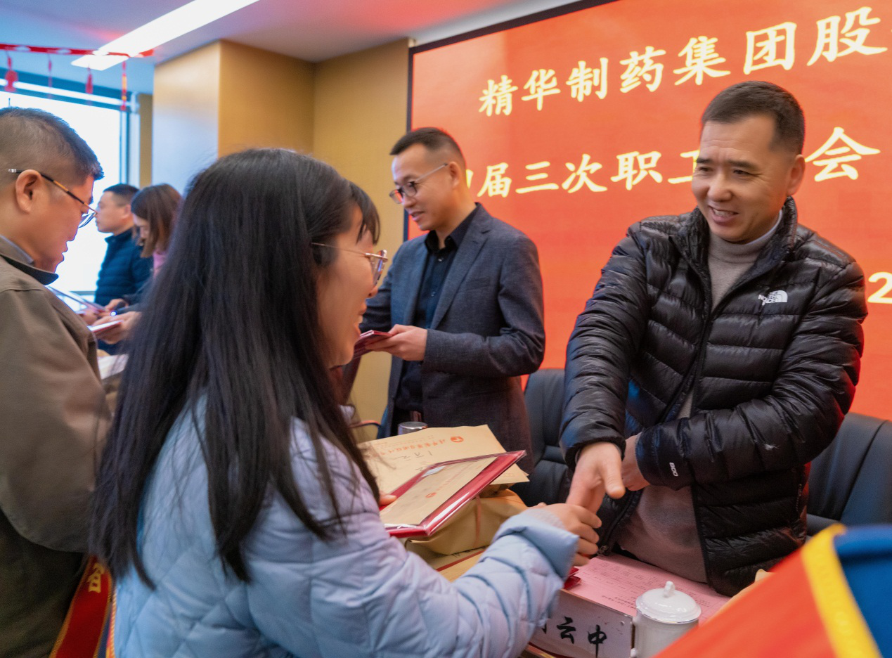 集團(tuán)總裁周云中向大會(huì)作了“2021年度經(jīng)營(yíng)工作報(bào)告。他回顧了2021年精華制藥圍繞“十四五”發(fā)展規(guī)劃戰(zhàn)略部署,緊盯經(jīng)營(yíng)目標(biāo)任務(wù),克服疫情、原材料漲價(jià)等不利因素的影響,在市場(chǎng)營(yíng)銷、品牌建設(shè)、研發(fā)創(chuàng)新、隊(duì)伍建設(shè)等方向持續(xù)發(fā)力,取得了可喜的成績(jī)。周云中對(duì)精華未來進(jìn)行了展望,希望全體代表們回到各自崗位后團(tuán)結(jié)員工堅(jiān)定不移的落實(shí)和推進(jìn)2022年公司全年發(fā)展目標(biāo),力爭(zhēng)取得新的突破。