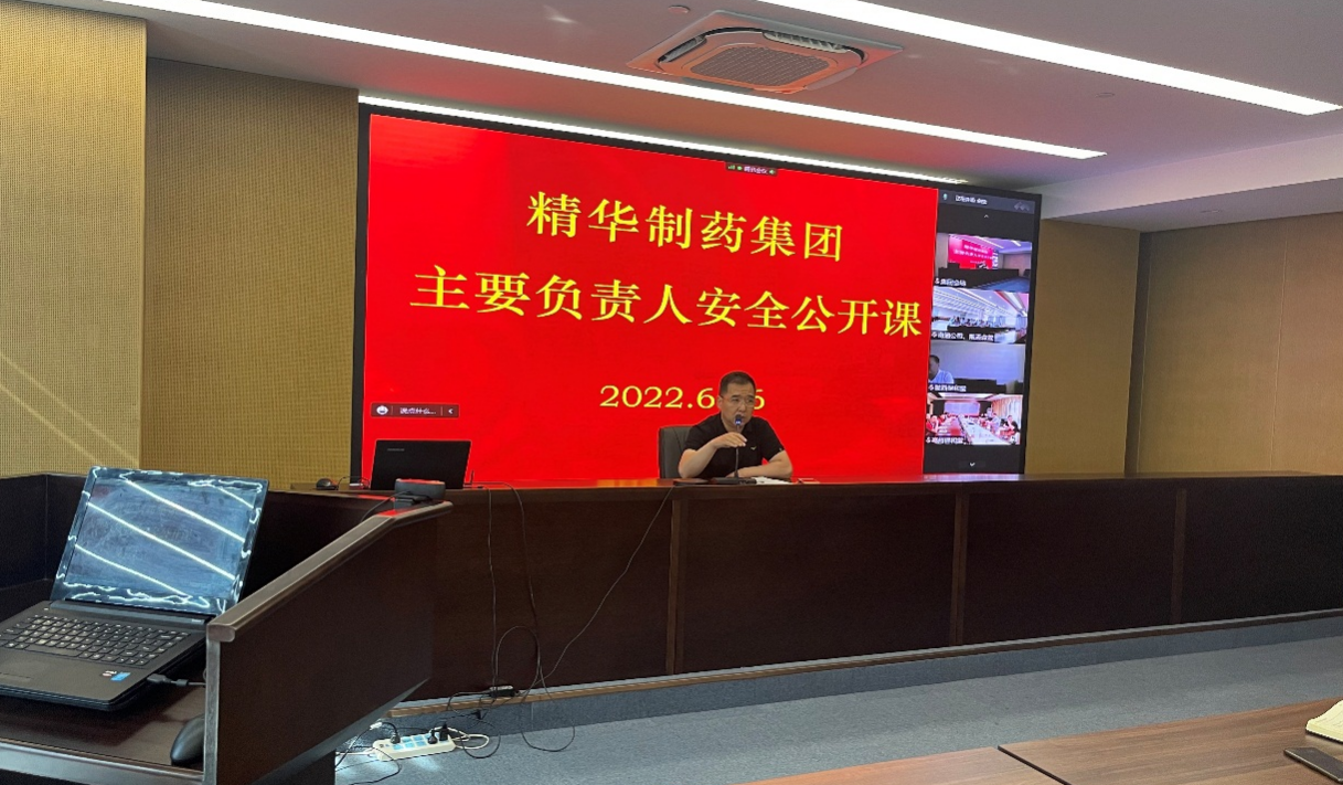 6月16日,精華制藥集團股份有限公司總經理周云中在總部大樓22層會議室講授安全公開課。集團公司全體員工參會、外地各分、子公司員工視頻參會。