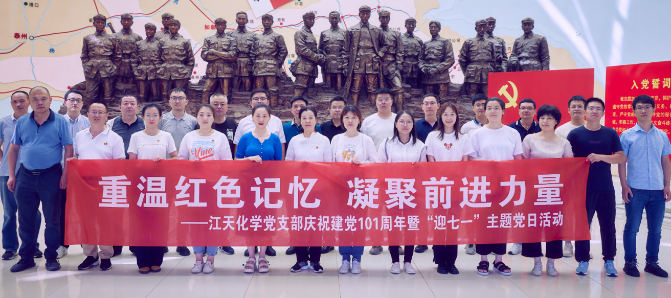 為慶祝中國共產(chǎn)黨成立101周年,根據(jù)公司黨支部的統(tǒng)一安排,6月26日,江天化學(xué)黨支部黨員、預(yù)備黨員、發(fā)展對象、入黨積極分子以及入黨申請人赴海安蘇中七戰(zhàn)七捷紀(jì)念館和如皋紅十四軍紀(jì)念館開展以“重溫紅色記憶 凝聚前進(jìn)力量”為主題的“迎七一”主題黨日活動(dòng)。
