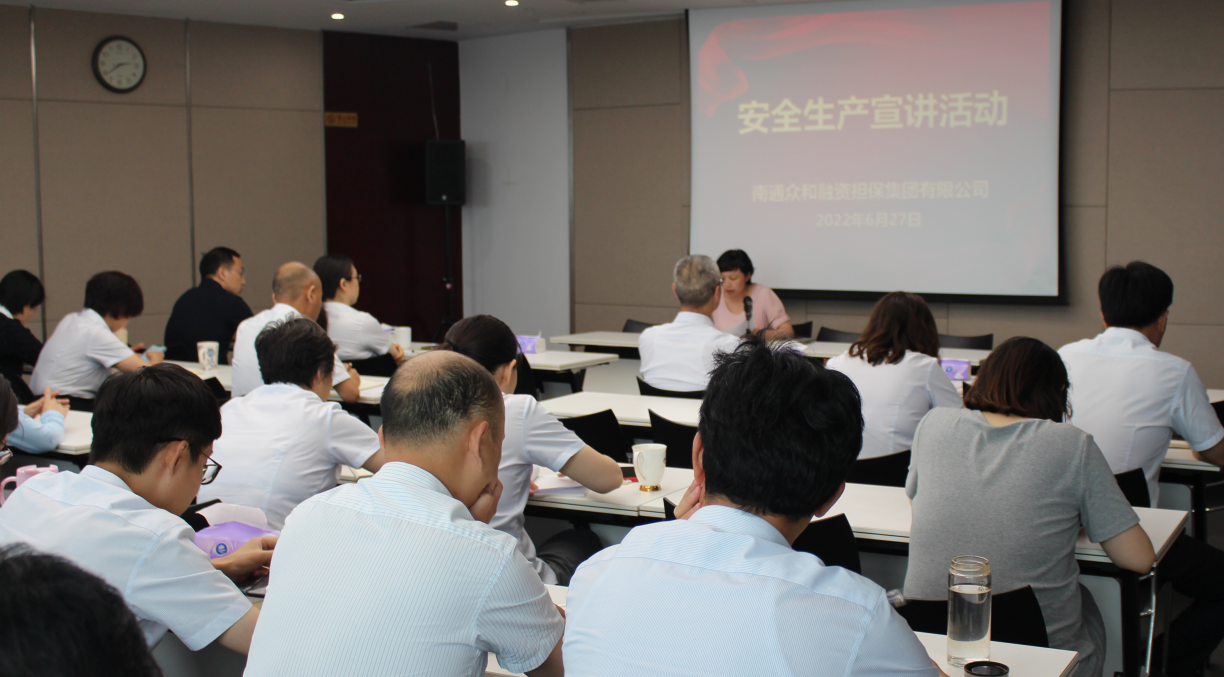 今年6月是全國(guó)第21個(gè)“安全生產(chǎn)月”,眾和擔(dān)保嚴(yán)格落實(shí)“安全生產(chǎn)月”工作要求,結(jié)合公司實(shí)際,細(xì)化完善活動(dòng)方案,圍繞“遵守安全生產(chǎn)法,當(dāng)好第一責(zé)任人”活動(dòng)主題,扎實(shí)開(kāi)展系列宣貫活動(dòng),推動(dòng)安全生產(chǎn)各項(xiàng)工作走深走實(shí)。 6月27日下午,眾和擔(dān)保召開(kāi)“安全生產(chǎn)月”宣講活動(dòng),公司全體員工及子公司領(lǐng)導(dǎo)班子成員共計(jì)40余人參加活動(dòng)。會(huì)上,黨支部書(shū)記李瑾傳達(dá)了產(chǎn)控集團(tuán)“安全生產(chǎn)月”專(zhuān)題工作會(huì)議精神,提出“提高思想認(rèn)識(shí)、落實(shí)制度規(guī)定、切實(shí)擔(dān)起責(zé)任、實(shí)現(xiàn)兩個(gè)確?!钡墓ぷ饕蟆?