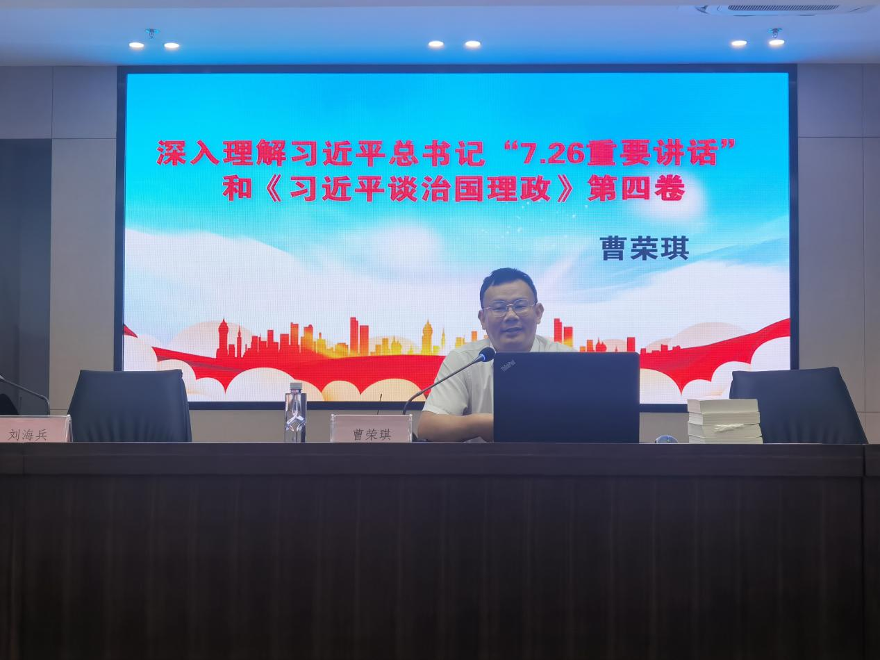 8月30日上午,國(guó)融公司召開(kāi)專題學(xué)習(xí)會(huì)暨主題黨日活動(dòng),學(xué)習(xí)習(xí)近平總書(shū)記“7.26重要講話”和《習(xí)近平談治國(guó)理政》第四卷,邀請(qǐng)南通市通州區(qū)委宣傳部副部長(zhǎng)、新聞出版局局長(zhǎng)曹榮琪作專題授課。學(xué)習(xí)活動(dòng)由公司黨委書(shū)記、董事長(zhǎng)、總經(jīng)理劉海兵主持,全體員工參加了此次學(xué)習(xí)。
